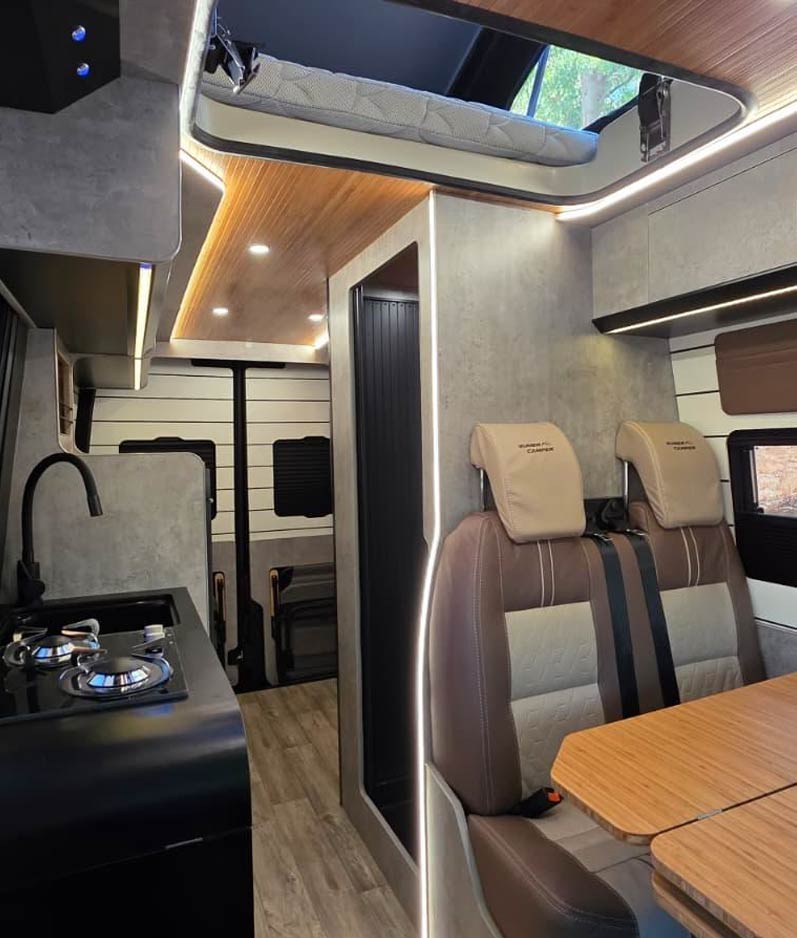 El proceso de camperización de cada vehículo ha sido cuidadosamente desarrollado para optimizar cada centímetro, garantizando una distribución funcional, cómoda y atractiva. Utilizamos materiales de alta calidad que aseguran durabilidad, resistencia al uso diario y un acabado impecable, pensado para acompañarte en cada viaje con total confianza.