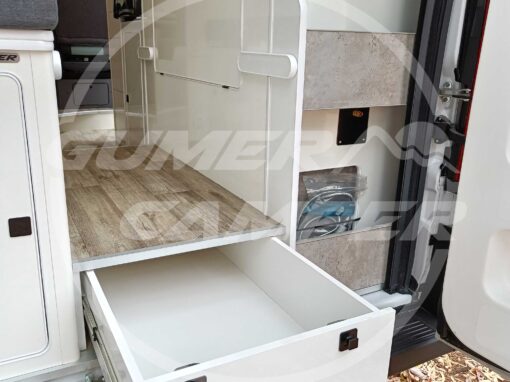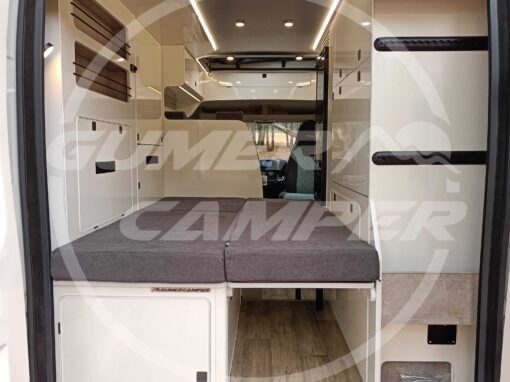 La camperización y el diseño de esta Fiat Ducato están personalizados para satisfacer los gustos y necesidades de nuestros clientes.