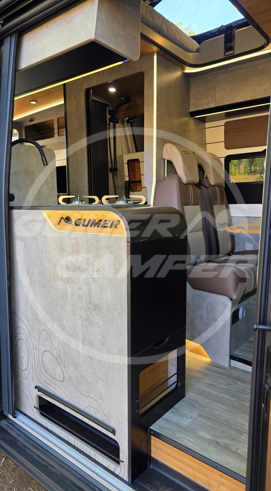 La camperización de esta MAN TGE 4×4 ha sido realizada completamente al gusto del equipo de GUMERCAMPER, cuidando cada detalle y apostando por un diseño exclusivo que refleja nuestra pasión por la aventura y el confort.