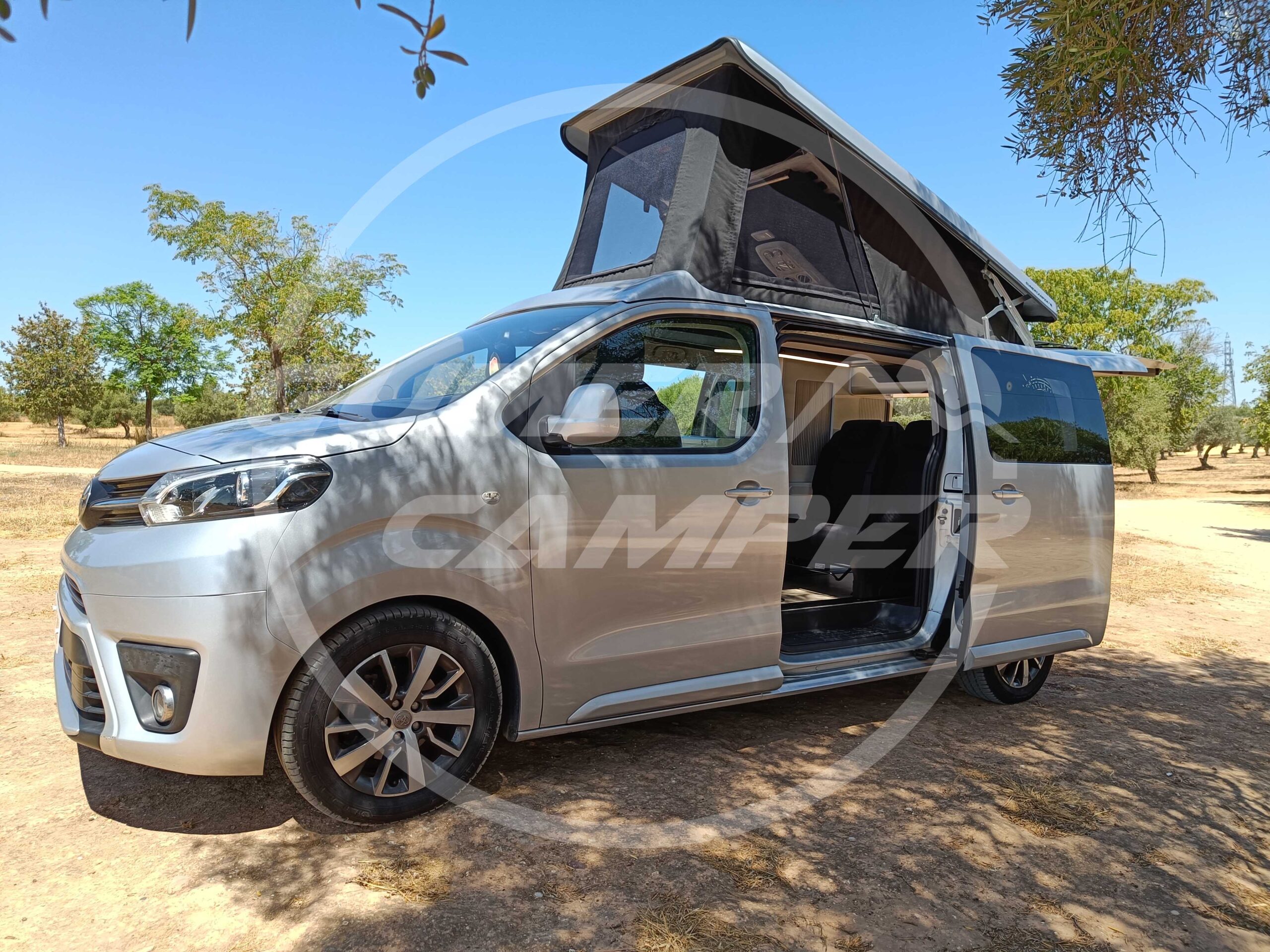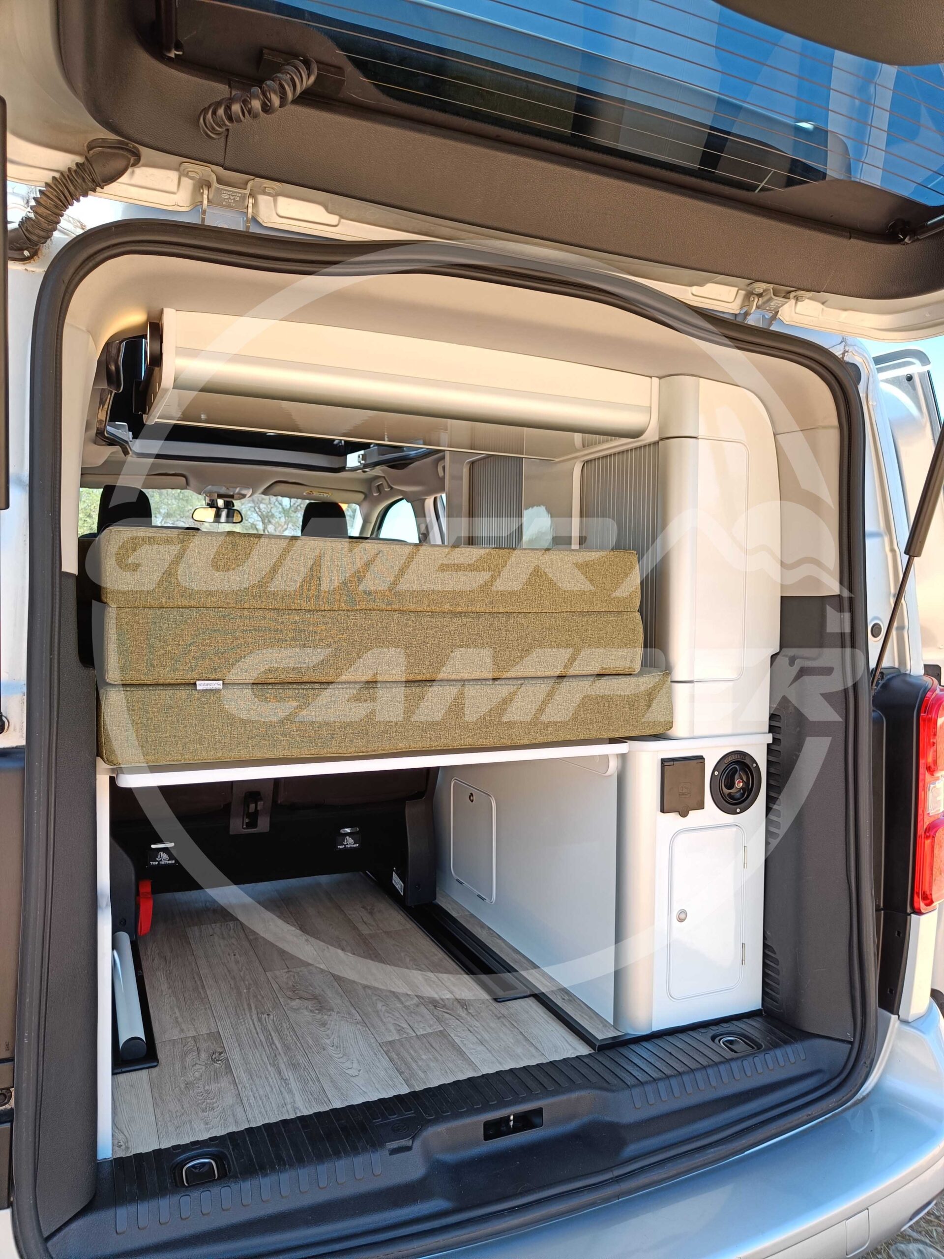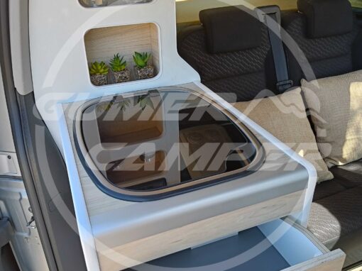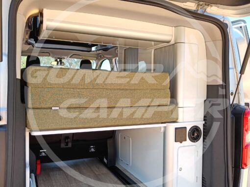 En la camperización de esta Toyota Proace M, hemos optado por este equipamiento y diseño siguiendo las necesidades y gustos de nuestro cliente.