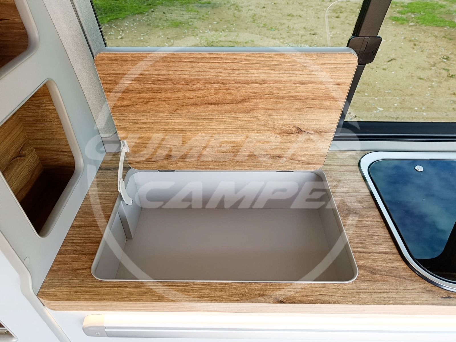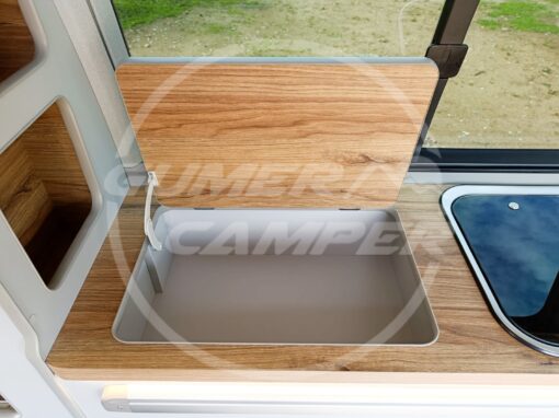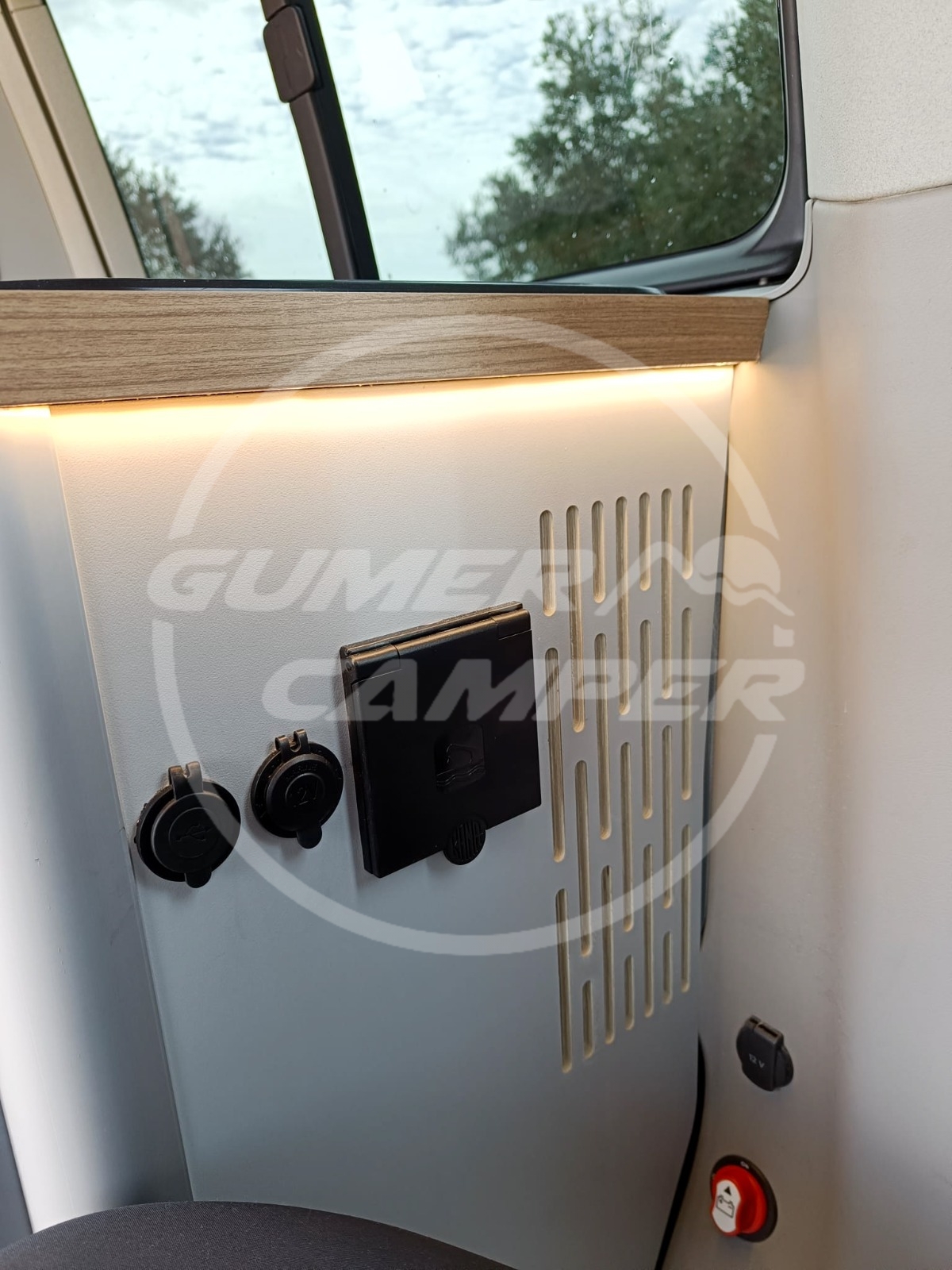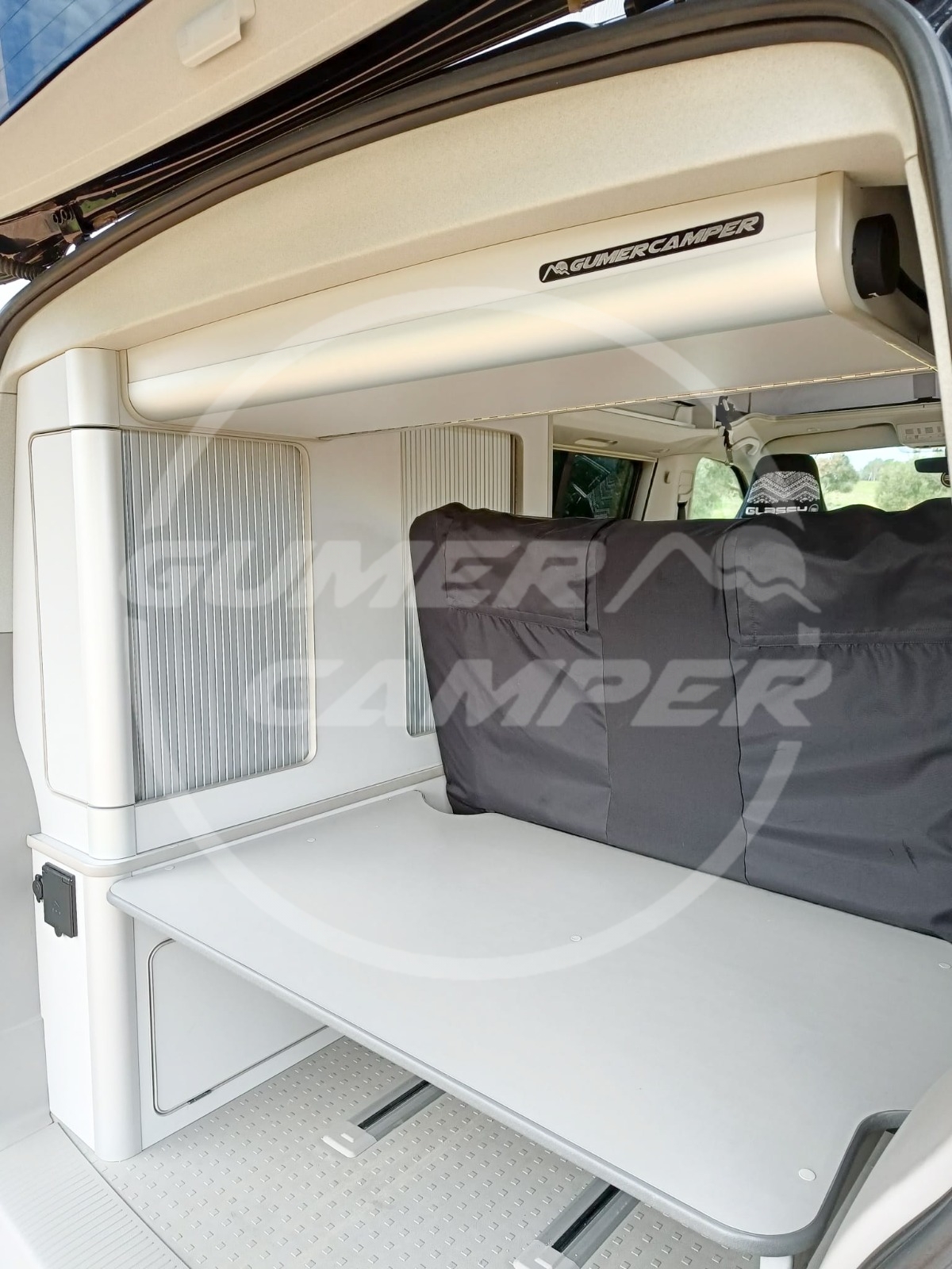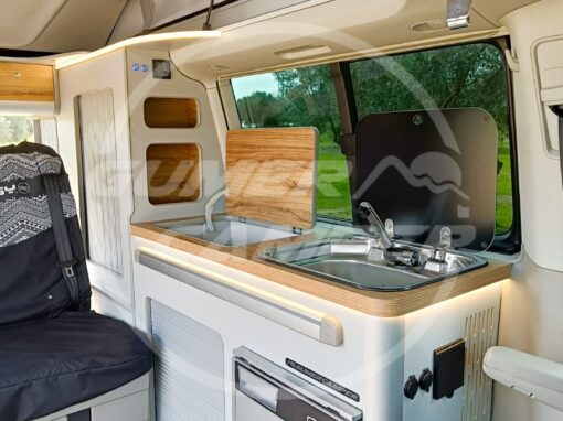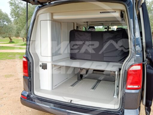 En este proyecto hemos transformado una Volkswagen California Beach original, incorporando mobiliario lateral y ampliando su equipamiento para hacerla aún más funcional y completa.